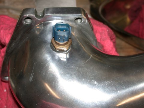 With the sensor in it's new home all that remains is to lengthen the existing wiring harness. Cut off the connector and splice in the added length of new wire, solder all connections, seal the connections with heat shrink, wrap well with electrical tape to avoid heat damage, and run the wiring. Nothing new here.
