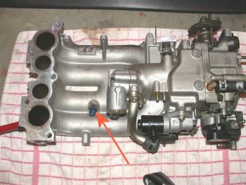 For this exercise the intake must be dissasembled to the point where the UIM is completely removed from the car. Follow the factory service manual (FSM). With the UIM off simply unscrew the AIT sensor and plug the hole with a short M10 bolt (I cut the end off with a hacksaw). Use some thread sealant to assure no vacuum leaks.
